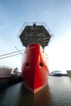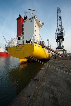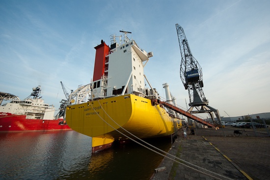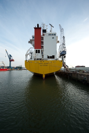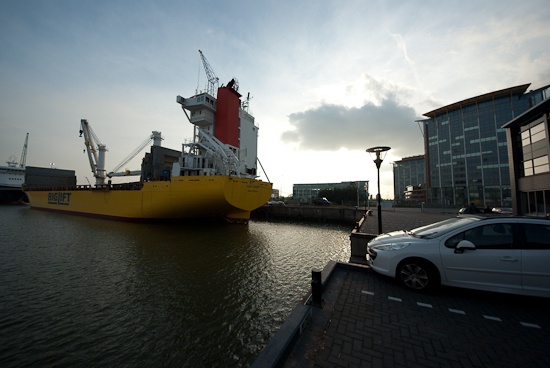 Op het moment liggen daar een aantal schepen van redelijk formaat waarvan ze er 1 bijna met de neus tegen de kade geparkeerd hebben