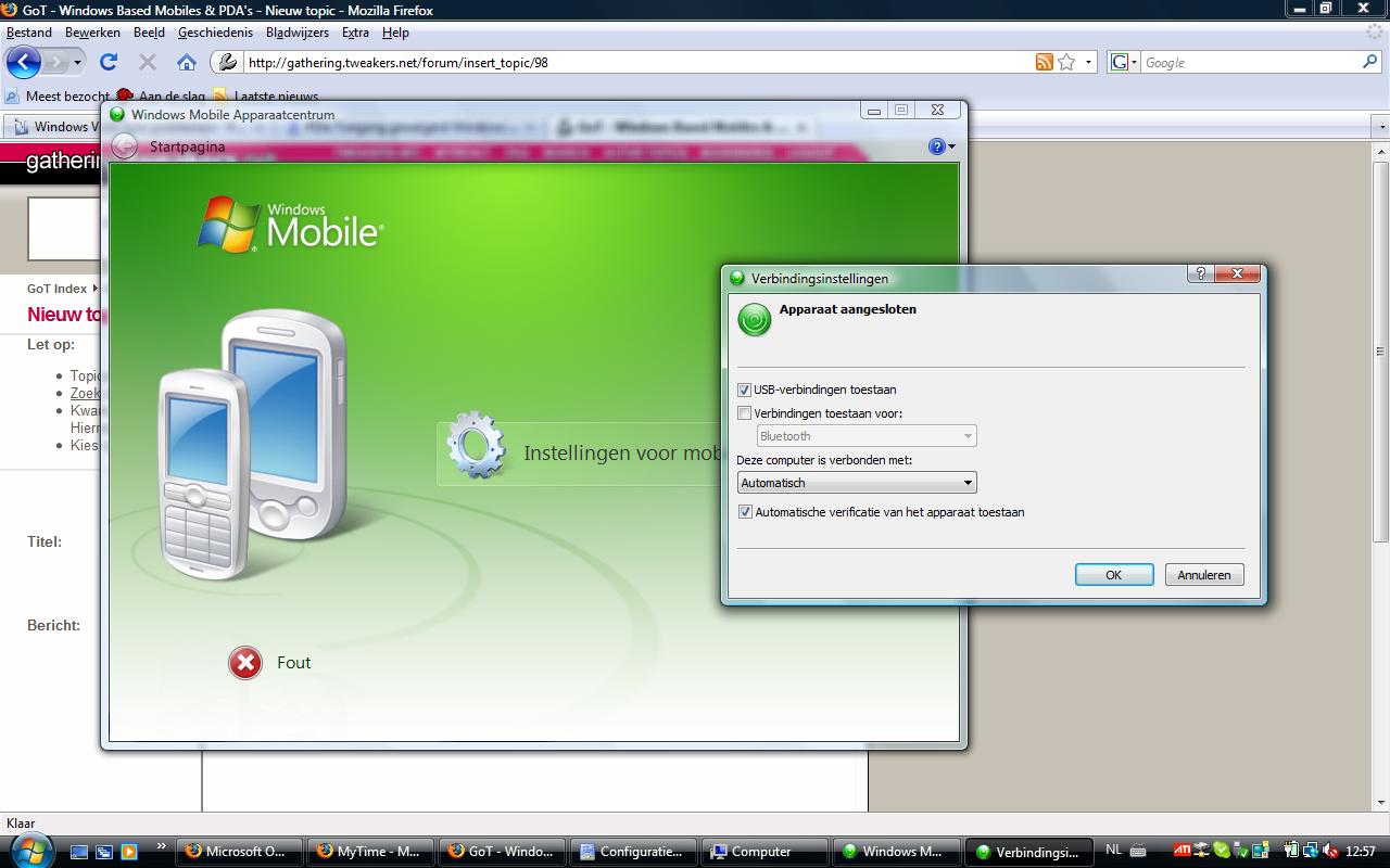 Ik ben in het bezit van een HTC P4350 (Herald) en nu heb ik sinds kort dat als ik hem aansluit op mijn laptop en/of pc dat Windows Mobiel Apparaatcentrum om mijn password vraagt, dat ik een 'fout' krijg, beetje onduidelijk maar dat is het enige wat hij doet: