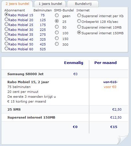 Als ik de restricties/snelheid/prijs van de internet bundel van Rabo mobiel bekijk is deze absoluut niet interessant voor mij. Heb toevallig gisteren weer mijn abonnement bij Telfort verlengt.