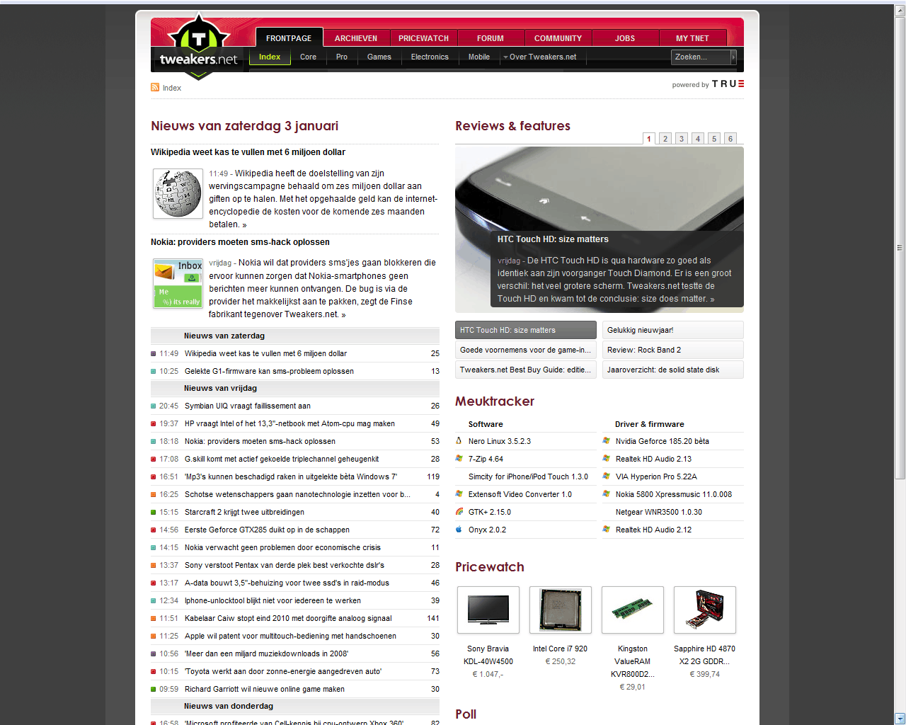 Als je de tracker op de FP zou kunnen uitschakelen zou de bovenkant inderdaad ook in elkaar moeten schuiven, dus het Tweakers logo wat naar rechts. Of de site an sich zou naar links moeten trekken, dus onder het tweakerslogo beginnen, dan heb je direct wat meer ruimte voor de topictitels bijvoorbeeld.
