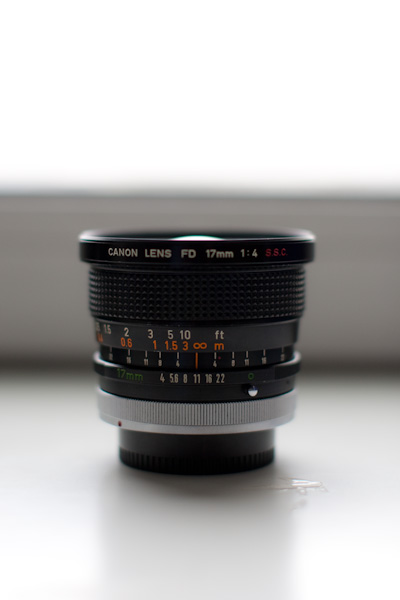 Deze lens is overigens errug wijd en was de wijdste recta-lineaire lens die het FD-systeem had tot de introductie van de 14L in '82.. De filtermaat is overigens een toen absurd grote 72 mm