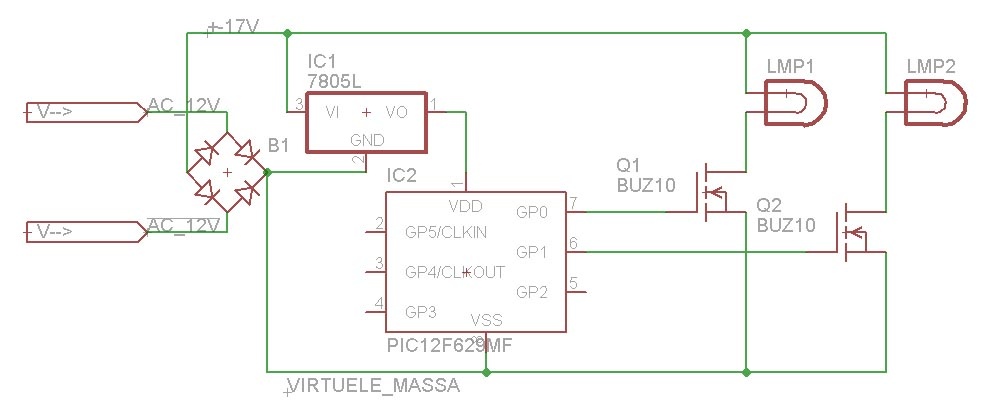 - met de 2 diodes en de 7805 de spanning voor de pic maken?