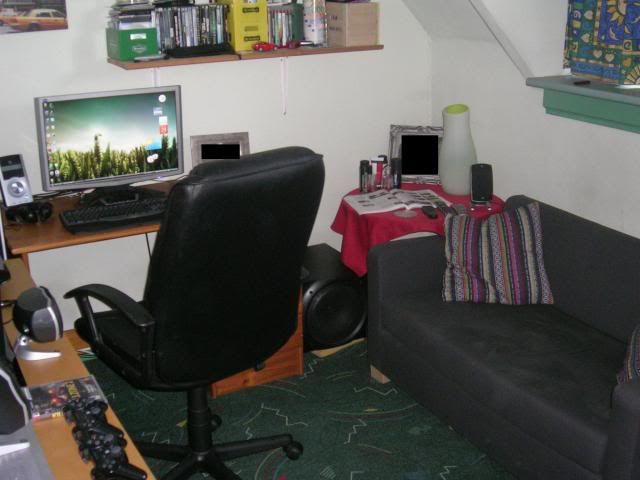 Hier dan mijn slaapkamer, welke ik ook gebruik als game- en homecinemakamer.