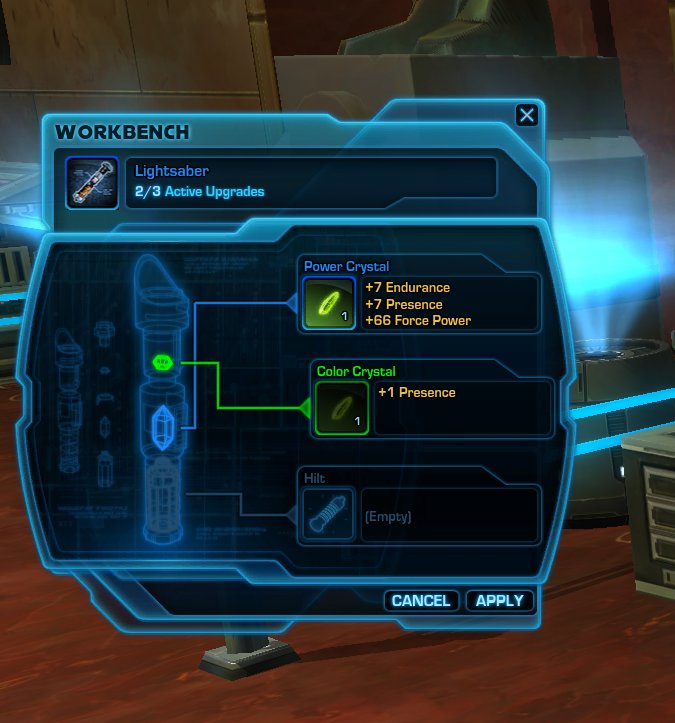 Dat viel mij ook al op. Andere mmo's hebben een dergelijk systeem. Echter vind ik het op een of andere manier niet goed passen bij Star Wars. Bij fantasiedieren kan ik me een 'spell' nog voor stellen.