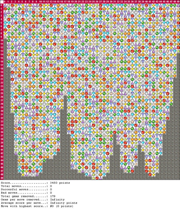 * BalusC zal tzt nog wel een speelveld van 50x50 met 100 gems met 10 verschillende ID's in elk column in elkaar prutsen. Gewoon even testen hoe het zich houdt on the limits