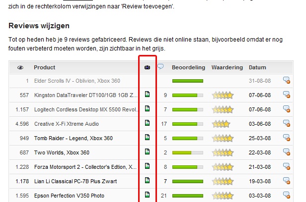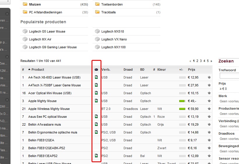 Is het mogelijk om dat kleine icoontje ook in de PW te krijgen bij alle items? Dan kunnen PW-bezoekers zien wanneer een product ook productfoto's er aan gekoppeld heeft. Die onmouseover-thumbnail hoeft van mij niet eens, als er zichtbaar is wanneer er foto's aan dat product hangen zou al goed zijn wat mij betreft.