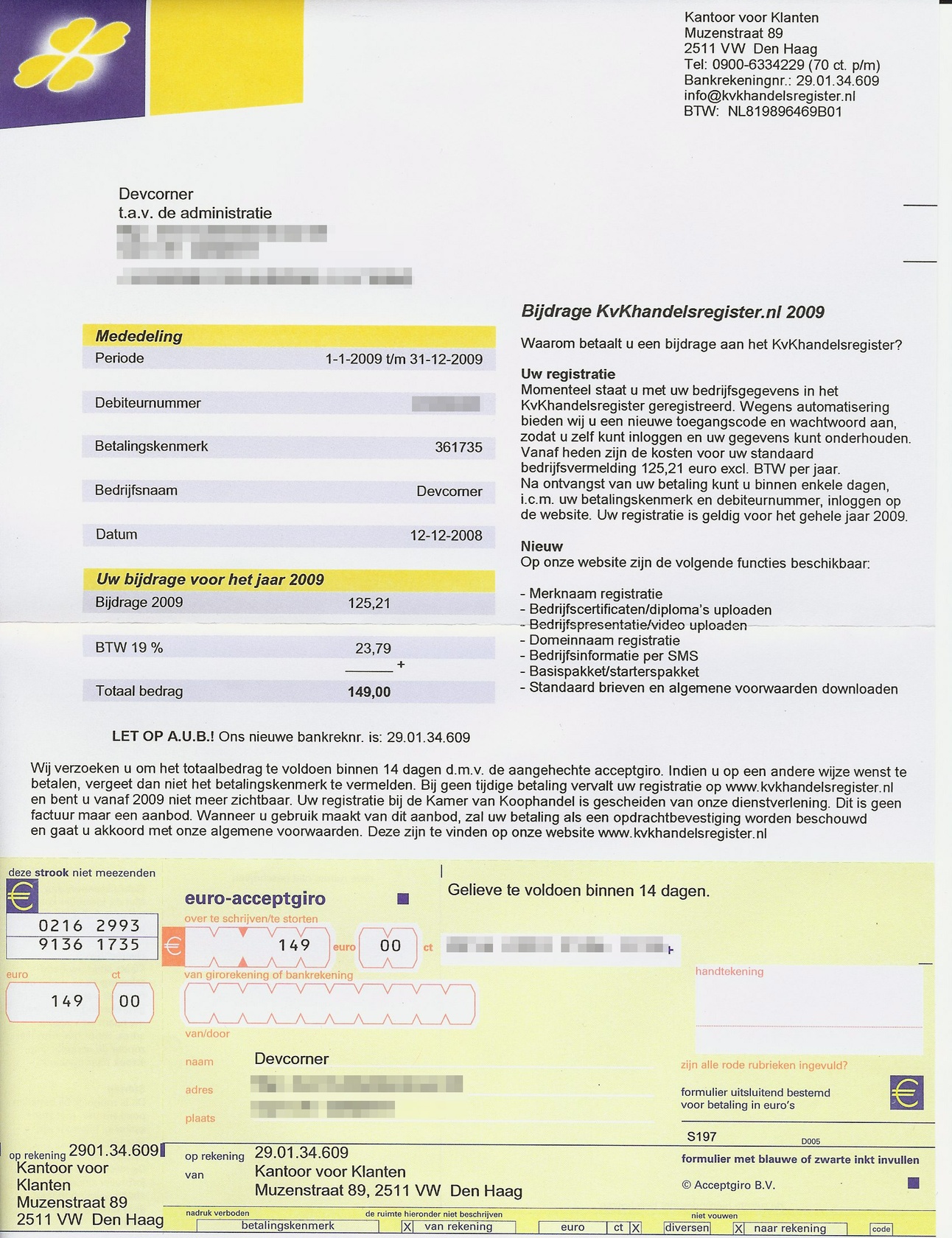 - bovenaan de brief staat het adres van 'Kantoor voor Klanten' in Den Haag met een 0900-nummer (wat ik niet ga bellen overigens)