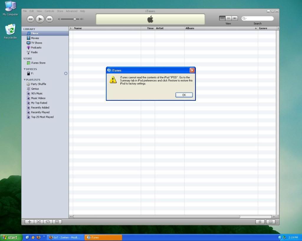 ik ben in het bezit van een iPod 5.5 30GB en ik heb een probleem waarbij iTunes niet meer mijn iPod wilt benaderen en de iPod schijnbaar leeg is.