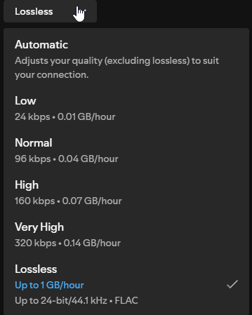 Mensen horen al amper het verschil tussen 320 kbps en wat Spotify aanbiedt. Hoger heeft [voor die mensen] geen enkel nut maar wel alle data-nadelen.