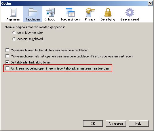 I ben een nieuweling in Firefox en gebruik(te) eerst Maxthon een schil voor Internet Explorer. Hiebij was ik gewend dat als ik op een link klik dat ik niet automatisch naar de nieuwe pagina ging maar nog op de pagina bleef waar ook de link stond.