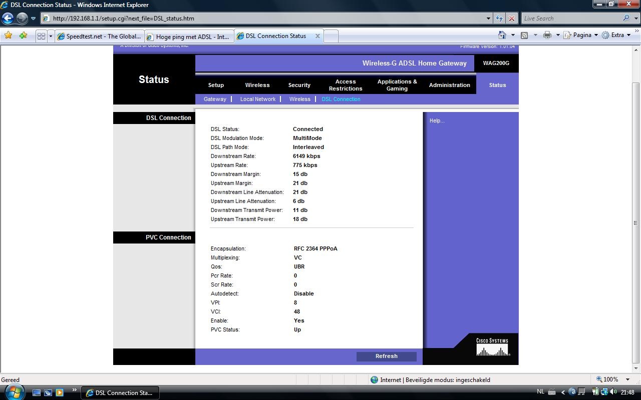 Als Modem router gebruiken ze een Linksys WAG200G. De standaard instellingen van Solcon (http://service.solcon.nl/...ellingen-voor-mijn-modem/) heb ik overgenomen.