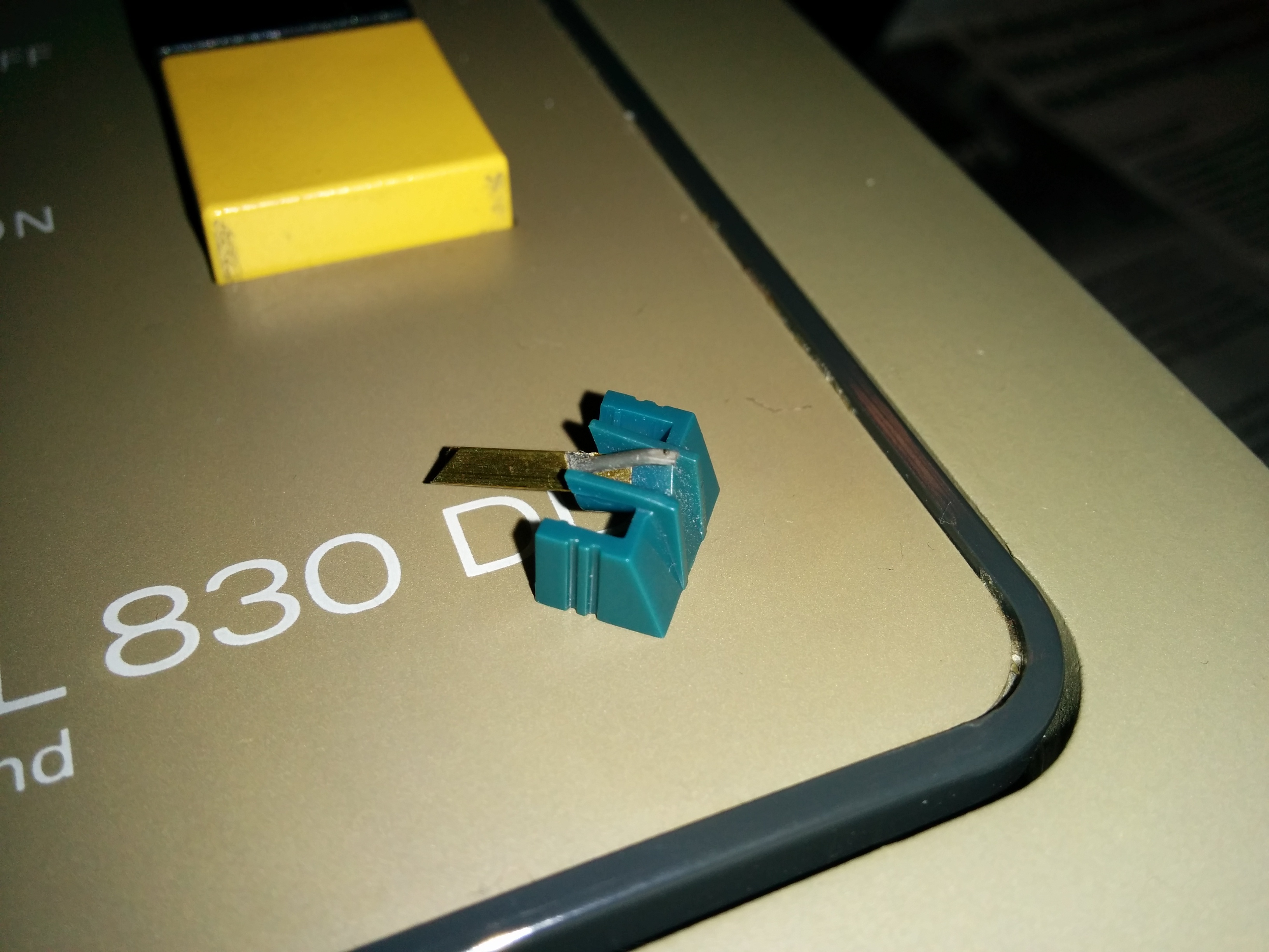 Sinds een aantal dagen heb ik een aantal platen gekocht, om de platenspeler van m'n ouders te lenen, een Lenco L830 DD. Nu heb ik op m'n Denon AVR 2330 geen phono input, dus heb ik een PreAmp Pro (TCC TC-750) gekocht. Deze is echter alleen geschikt voor Moving Magnets elementen, ik vraag mij af welke naald er in die Lenco zit. Ik kan nergens op de naald of platenspeler zien welke dit is, heeft iemand enig idee (voordat ik die pre-amp sloop)?