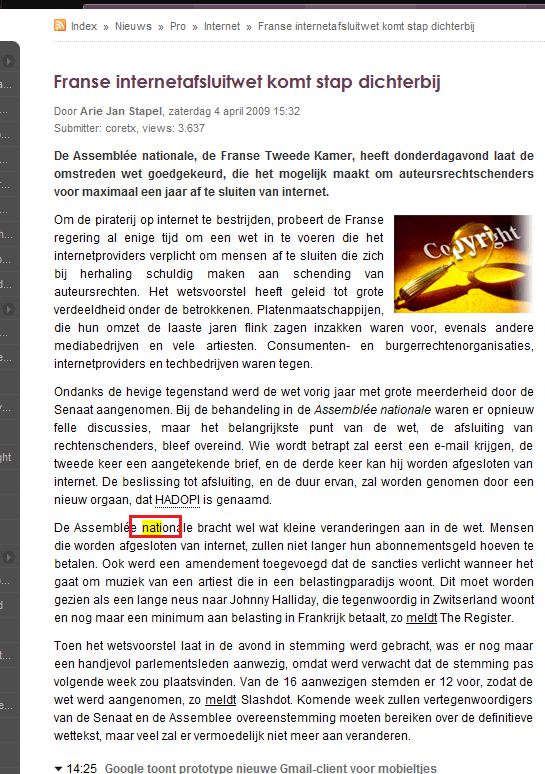 nieuws: Franse internetafsluitwet komt stap dichterbij