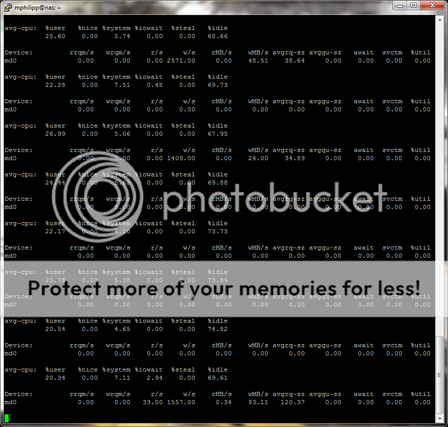 Nu gebeurt het op de gekste momenten. Vanmorgen een paar keer terwijl ie alleen maar aan het downloaden was. De array die op de highpoint zit was toen stil. Dus de ene keer gebeurt het als ik 'm zwaar belast, de andere keer als ie uit zijn neus zit te eten. Ik kan maar geen gemeenschappelijke factor vinden, behalve sabnzb. Misschien even een weekje geen sabnzb gebruiken en alles weer via Newsbin op mijn pc downloaden en de opslag op het nas doen. Als het dan wegblijft is het iets dat sabnzb doet.