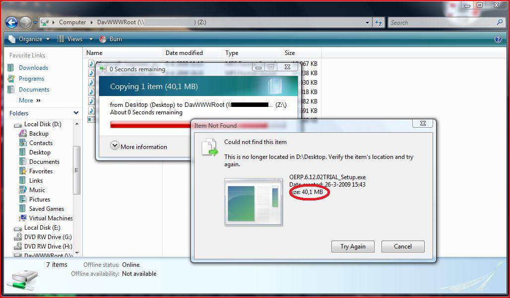 Ik kan vervolgens ook prima connecten (via Windows Authentication). > Ik krijg in Vista Explorer netjes een Network-Disk incl. het "Volume-gebruik balkje"