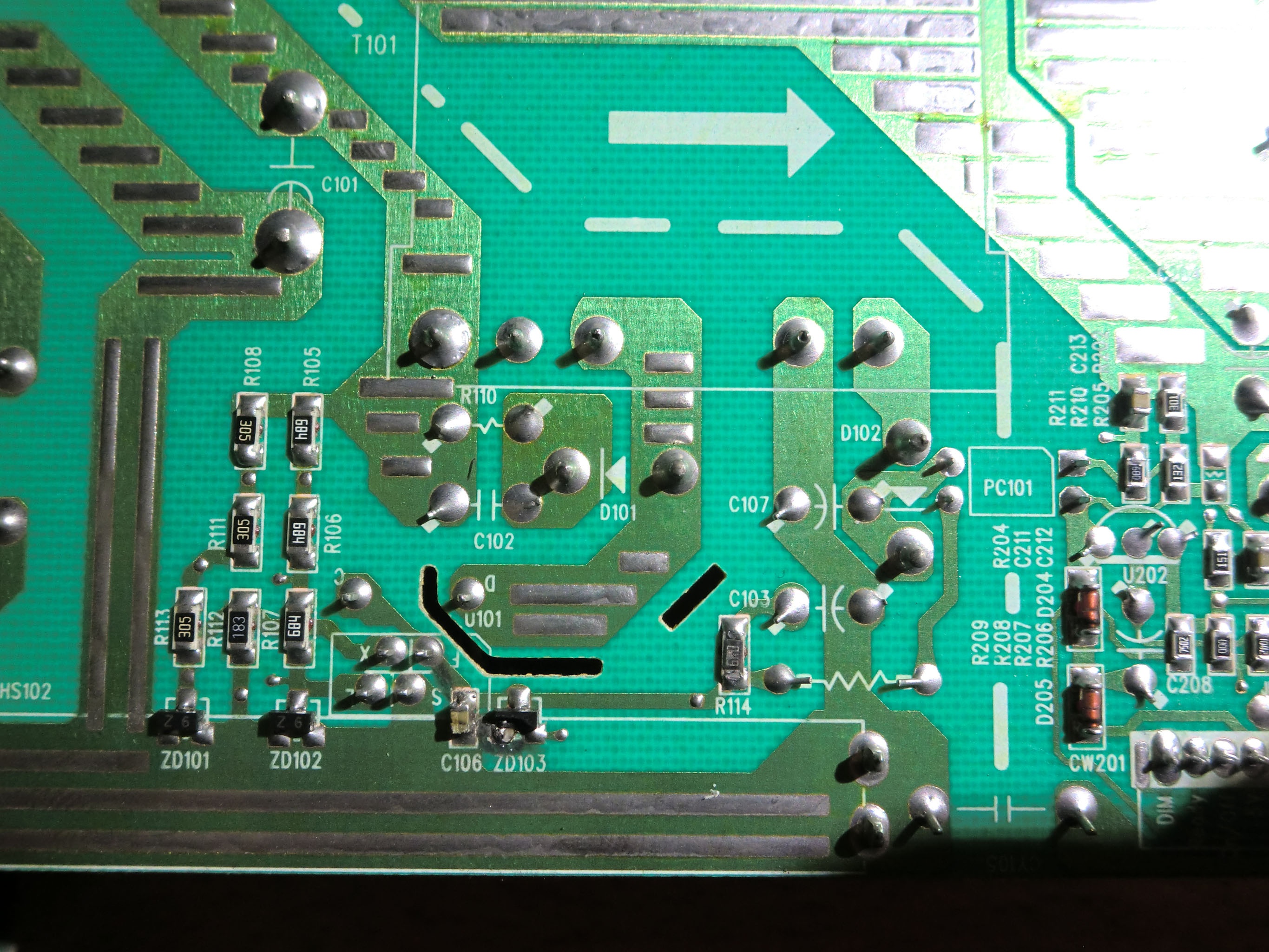 Maar... wanneer de trafo en diode goed lijken te zijn heb je geluk, en is enkel de feedback-lijn stuk. Condensatortjes en weerstandjes vervangen, en dat IC, en je bent er.