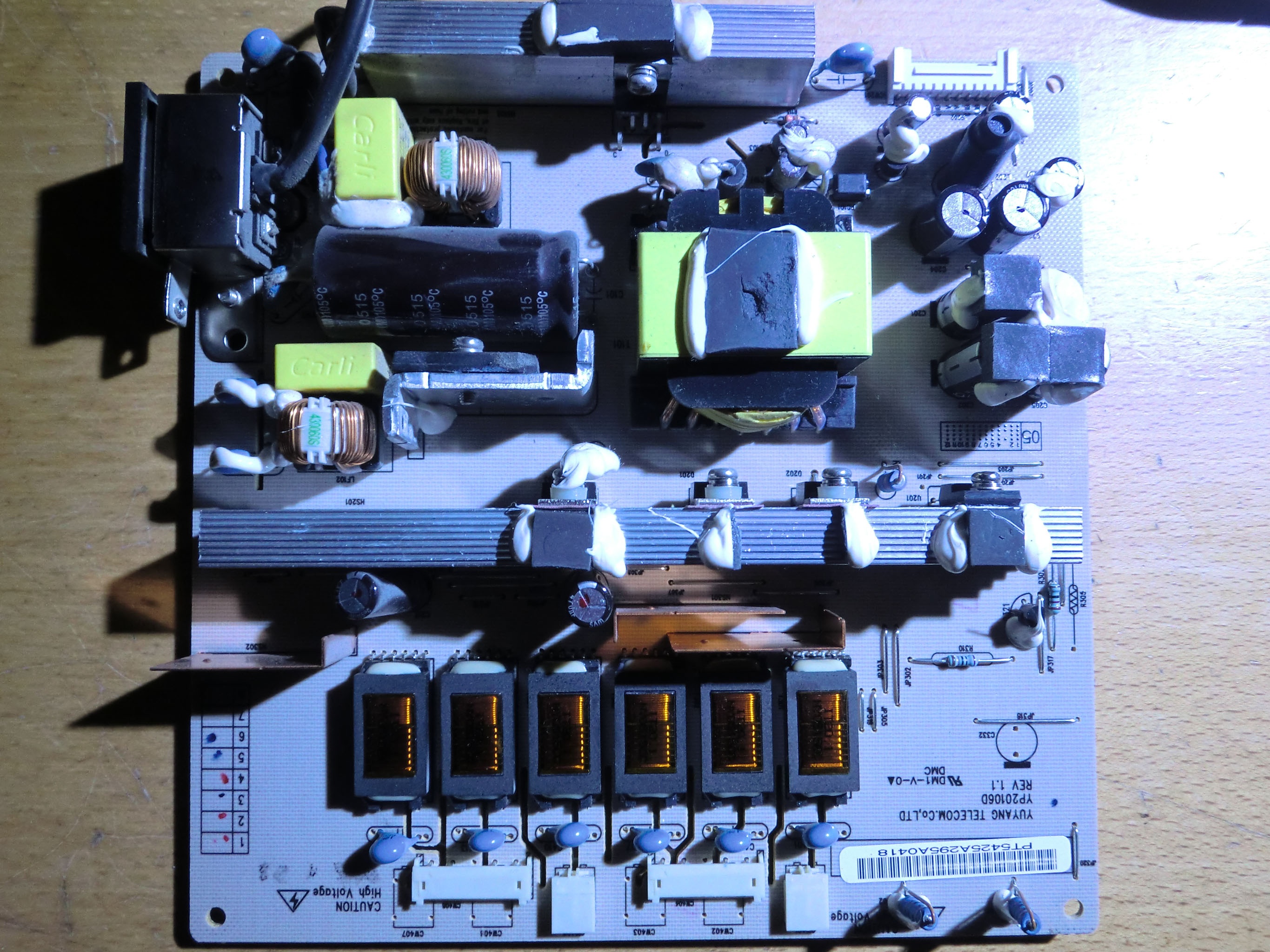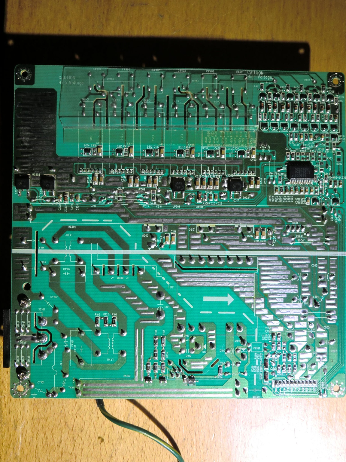 Ik ben overigens lichtelijk geshockeerd door de relatief slechte kwaliteit van dit bord! Dell staat bij mij bekend als een bedrijf dat zeker op de betere monitoren gewoon Delta-bordjes te gebruiken en garant te staan voor goede kwaliteit. Dit bordje ziet eruit als... een el cheapo single-sided bordje met slechte ingangsfilters, zo goed als geen input protection, al helemaal geen PFC, veel heatsinking en dus waarschijnlijk een ouderwetse forward-converter (ipv een modernere resonante converter). Dit wordt gevolgd door een hokkietokkie niet-vindbare flyback controller (wederom, de betere monitoren gebruiken resonante flybacks) voor de CCFLs...