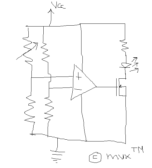 LDR, twee weerstandjes, potmeter en een comparator. Als je bij de getekende pot een LDR aansluit gaat hij juist uit als het donker wordt..(spanning positieve ingang wordt lager dan negatieve -> uit). Dus links onder de LDR plaatsen ipv weerstand of gewoon de inputs omdraaien.mux schreef op donderdag 24 maart 2011 @ 20:29: