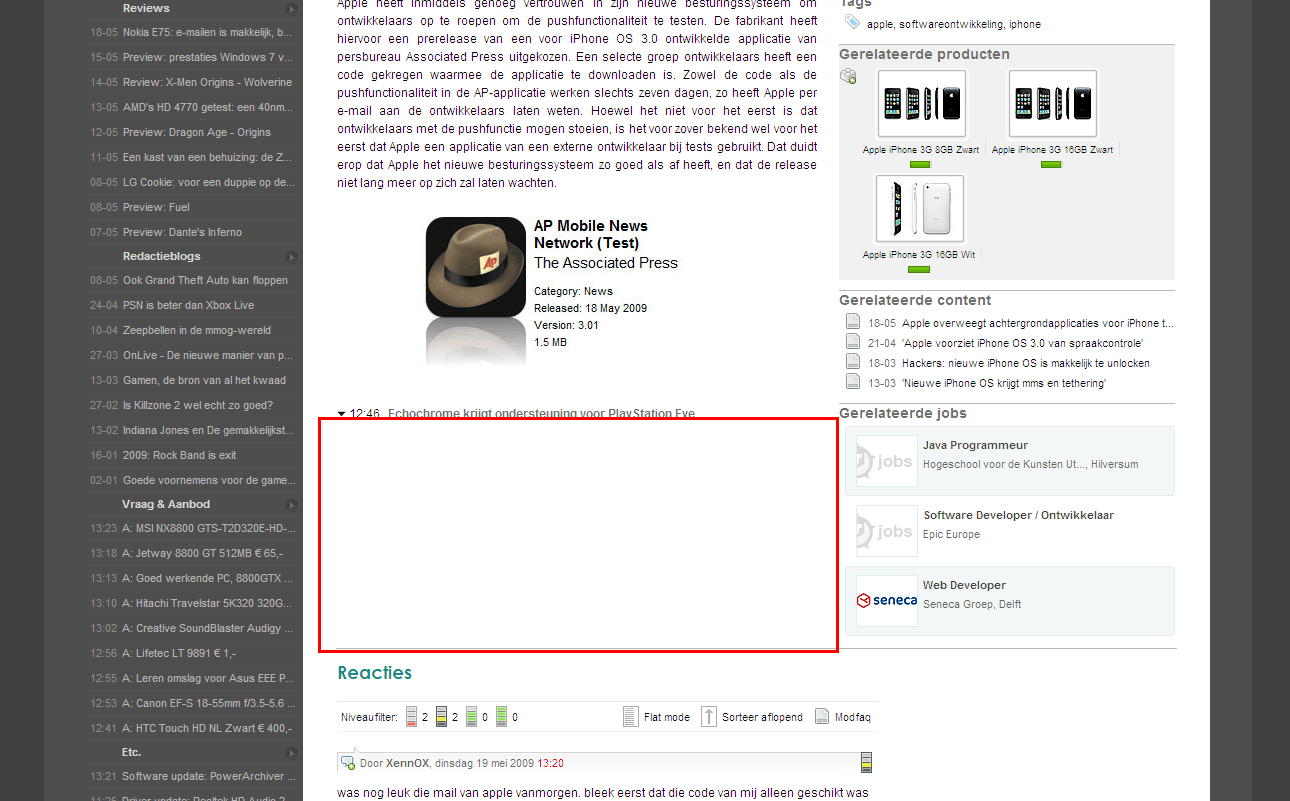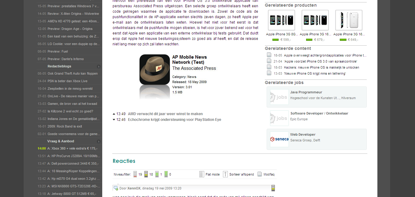 Ik zat zonet even op de FP te snuffelen en zag plots "Gerelateerde jobs" in de rechterbalk bij het Apple artikel: nieuws: Apple mobiliseert ontwikkelaars voor iPhone OS 3.0-test
