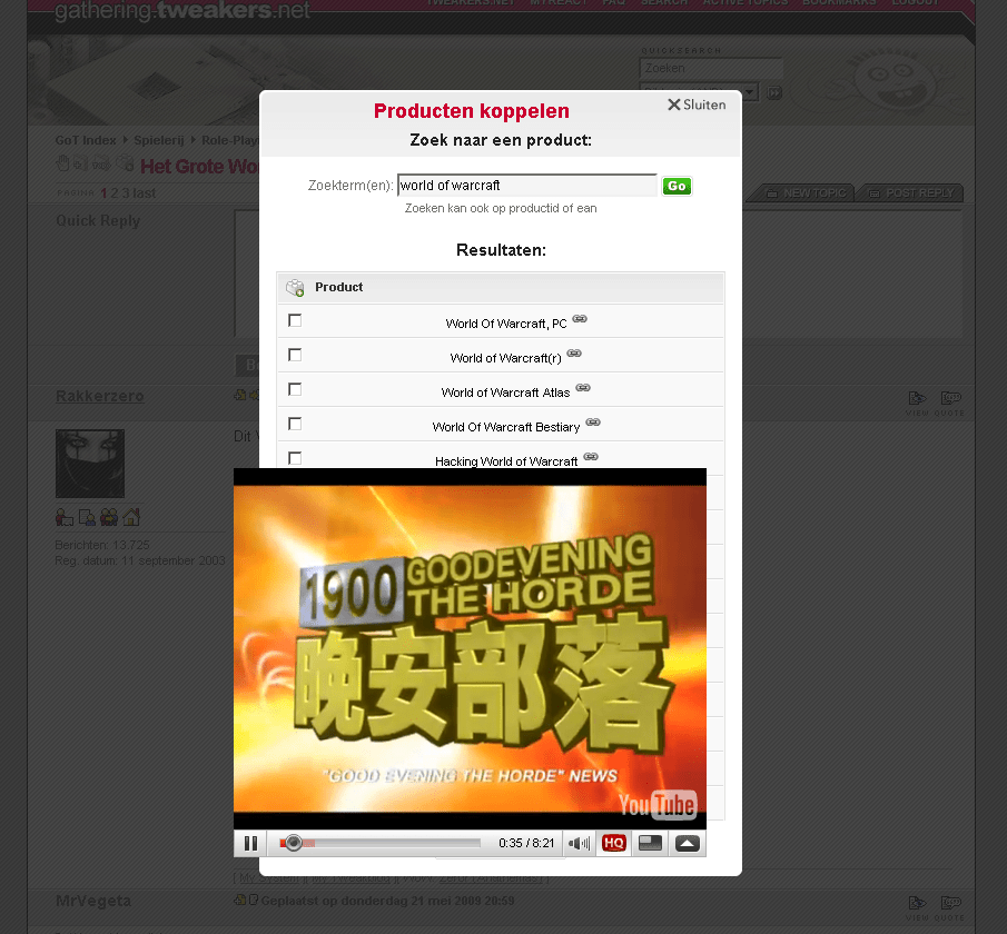 Zonet wou ik bij het World of Warcraft topic even de spellen toevoegen om zo de vindbaarheid te verbeteren via de PW. Rakkerzero had toevallig een video geplaatst en aangezien ik de boel in omgekeerde volgorde lees stond deze bovenaan.