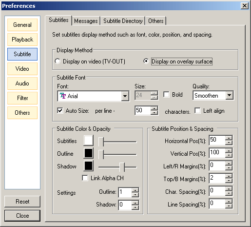OndertitelingMet de Subtitle finder kan je in de GOM Player database op zoek naar het juiste ondertitelingsbestand. Eenmaal in het bezit van een ondertiteling valt deze op verschillende manieren aan te passen: waar en hoe deze weergegeven moet worden, synchroniseren met de video zodat je ondertiteling gelijk loopt. Ook het laten weergeven als zijnde ingebakken ondertiteling is een van de mogelijkheden.