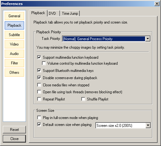 PlaylistDe Playlist voegt automatisch bestanden toe die in dezelfde map staan en gelijkende namen hebben. Ook worden de standaard playlistformaten ondersteund zoals .asx, .m3u en .pls en kan je je eigen afspeellijsten met verschillende typen media maken.