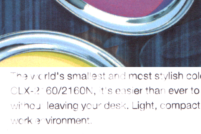 Dit plaatje (indien geklikt) toont een 100% crop van een 300dpi scan van de demo-print, waarop het probleem duidelijk zichtbaar is (NB: de twee helften zijn niet persé recht onder elkaar uitgeknipt):