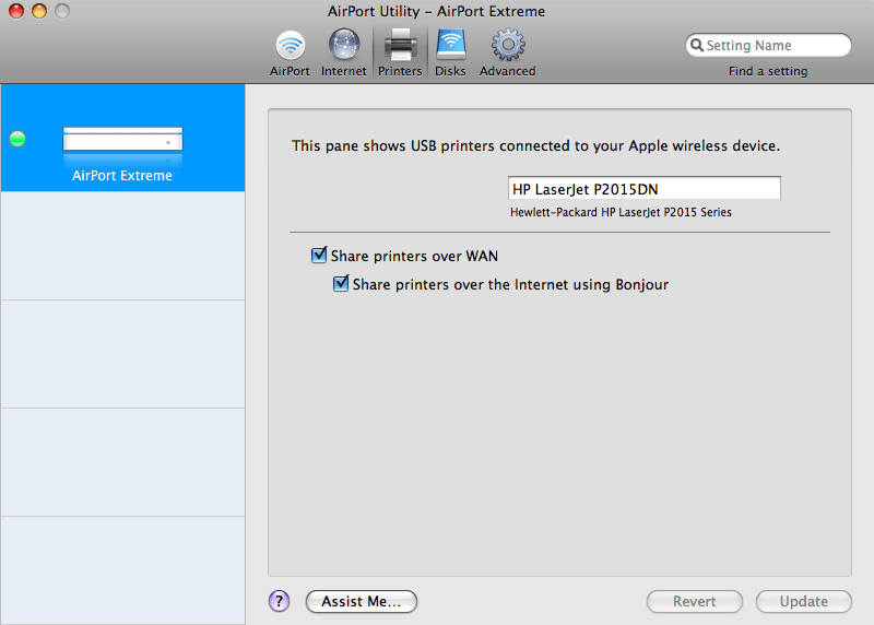 Sinds enige tijd heb ik een Airport Extreme. Alles werkt prima, alleen het delen van de printer over internet wil niet echt lukken. Op dit moment heb ik (tijdelijk) de beschikking over twee internetverbindingen: