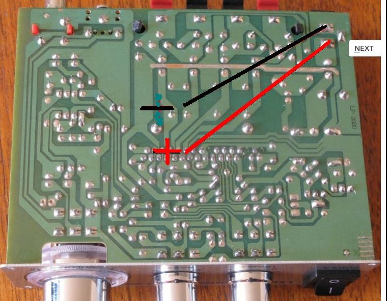 - Moet deze dan parallel aan de voeding naar de versterker hangen?