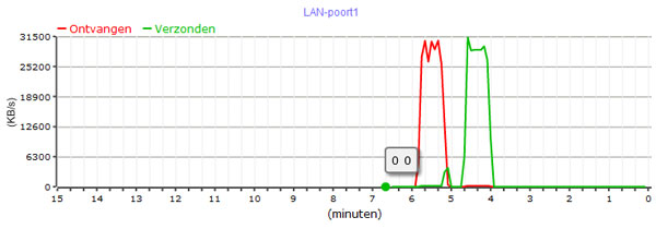 Deze meting vond plaats onder ideale omstandigheden: afstand ca 5 meter tot, in direct zicht van router.