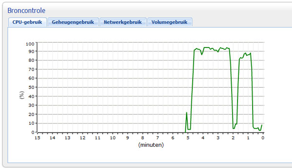Ik wilde dat toch eens uitzoeken en heb een Blu-ray van 50GB gedownload. Dan wordt het op een gegeven moment onmogelijk om SABnzbd in te komen. Diskstation zelf lukt wel alleen wat langzaam. CPU gebruik is tegen de 100%. Geheugen gebruik op 14%. Ook gaf hij 4x een cherrypy error in SABnzbd.