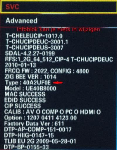 Mijn zoon heeft aan onze splinter nieuwe Samsung UE46C6700USXXN gezeten en heeft met een of andere optie (info-menu-mute-power) er proberen een ander model er van te maken. Nu is dat niet gelukt maar hij heeft wel het type nummer verandert zonder op te schrijven wat het was. #$%&@