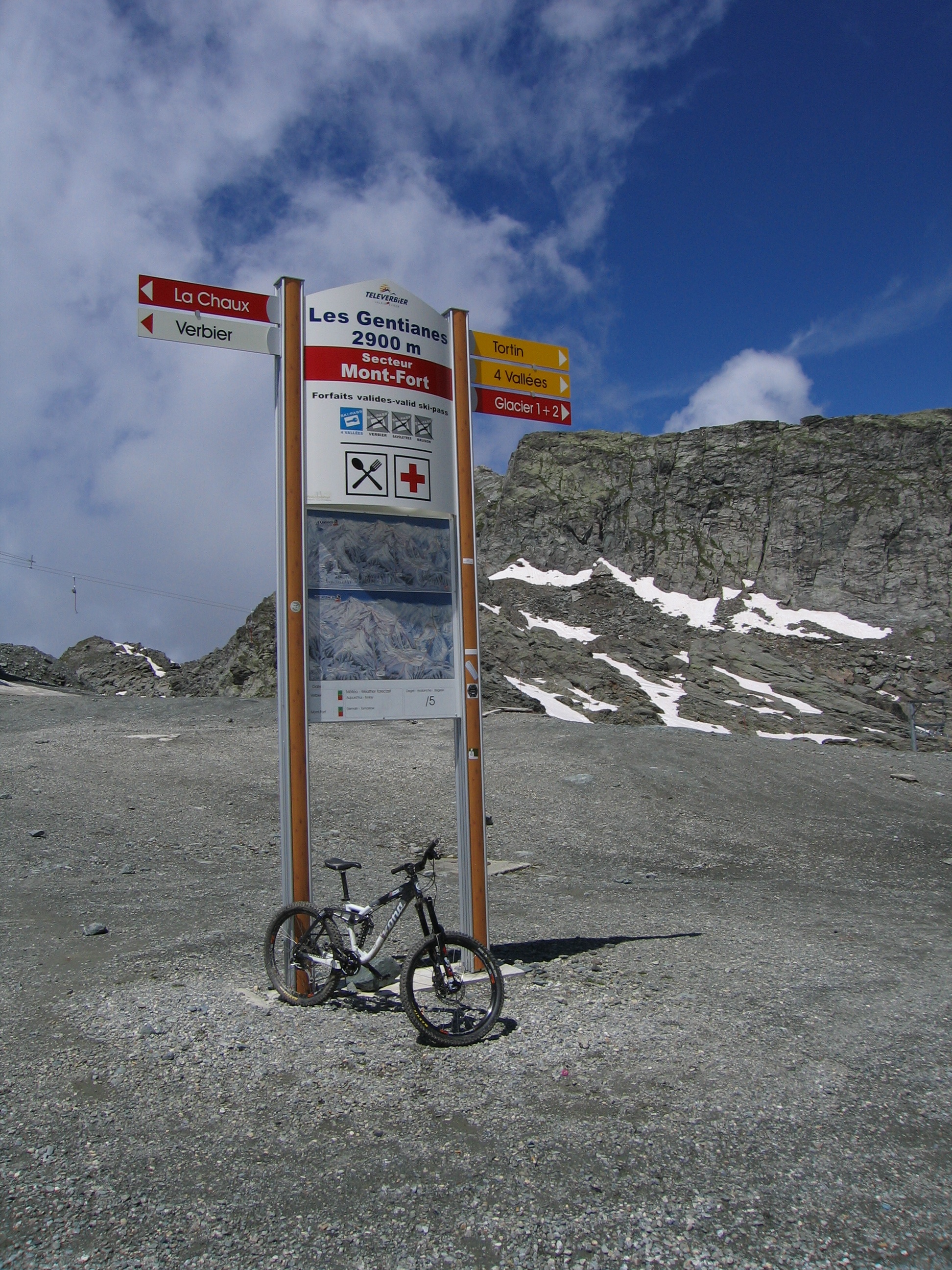 Op een mountainbike-vakantie in Verbier was gewaarschuwd dat een route wat te heftig was voor mijn hardtail, dus die dag een Kona Stinky gehuurd. Uiteraard alleen SPD-schoenen bij me, dus mijn pedaaltjes zijn netjes even overgezet