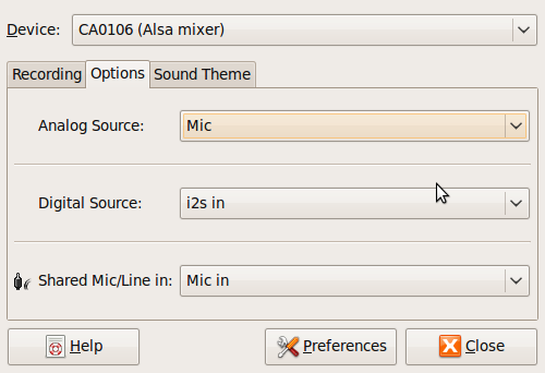 De enige optie die een redelijk volume geeft zorgt er dus helaas ook voor dat alle beluisterde geluiden direct naar de microfoon doorgestuurd worden. Is dit een feature van 'IEC958 out'? Of is er iets wat ik aan kan passen bij 'IEC958 out' zodat dit effect verdwijnt ? Of is er misschien een andere manier om het volume van de microfoon te boosten met de andere 'Digital Source' opties zoals 'i2s in', want deze heeft niet de terugkoppeling van het geluid naar de microfoon. Voor een beginner is het geluidssysteem in Linux erg verwarrend, eigenlijk probeer ik maar steeds wat via trial en error. Hebben jullie misschien een tip voor me met betrekking tot het volume van de microfoon?