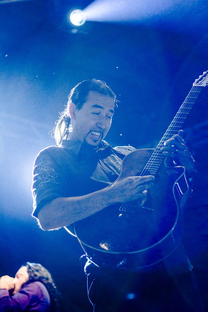 #1 doet me niet zo heel veel, misschien als je een iets ander standpunt had gekozen (paar stapjes naar rechts) en de focus op zn gitaarpick had gelegd, in plaats van zoals nu op de achterkant van zijn hand die het zicht blokkeert.. Bij #3 is het jammer dat zijn gezichtsuitdrukking niet te zien is door de onscherpte en het feit dat zijn gezicht net in de schaduw valt.