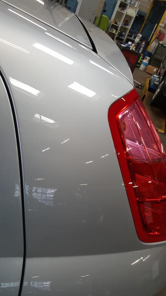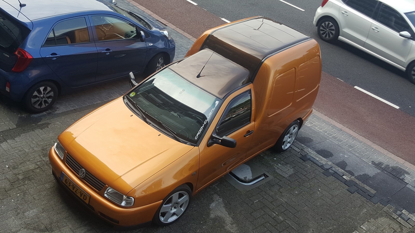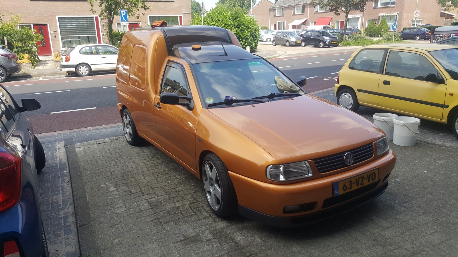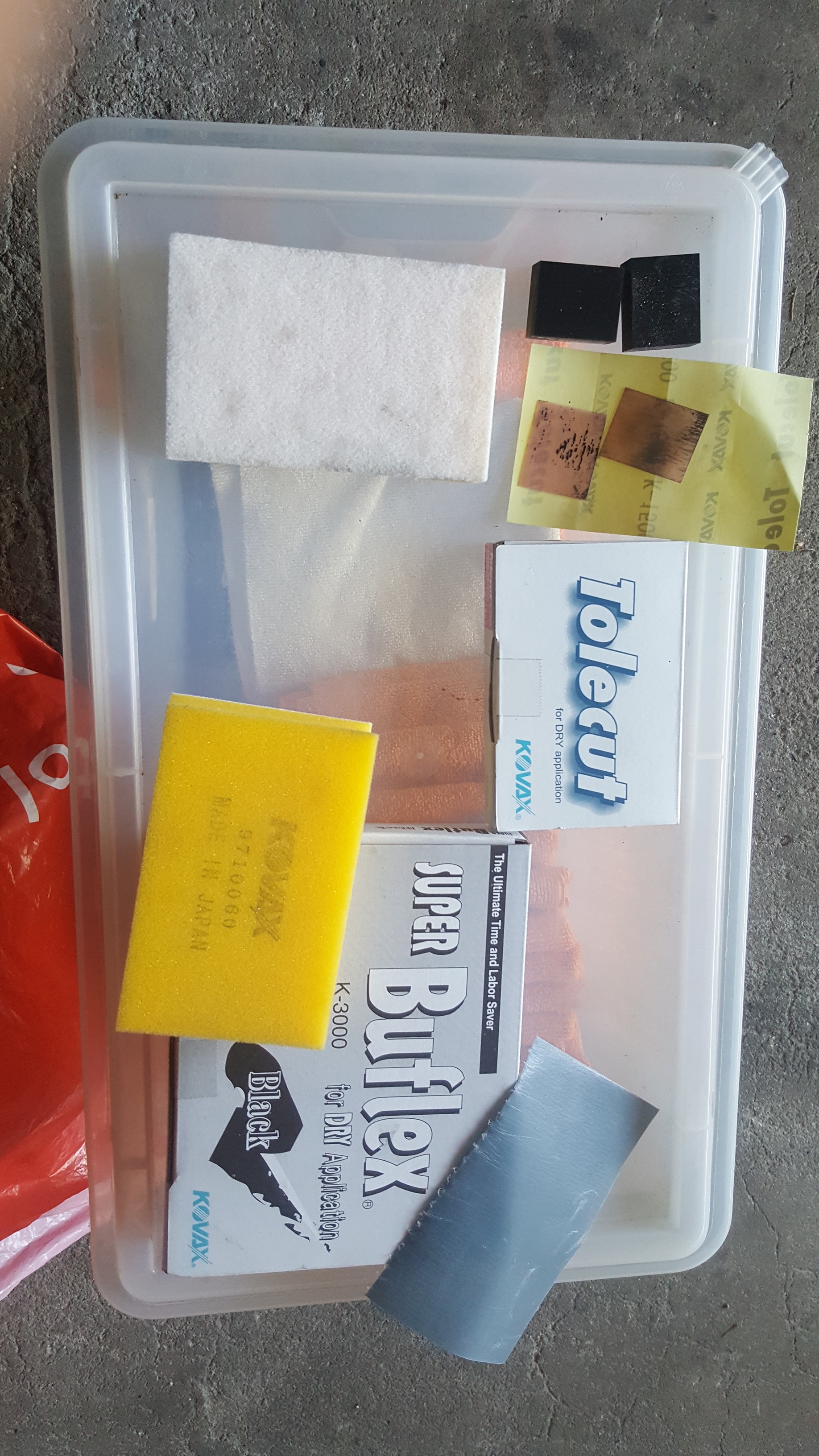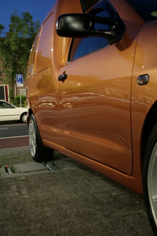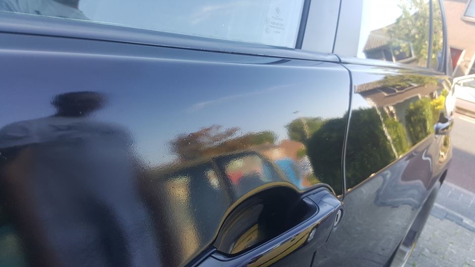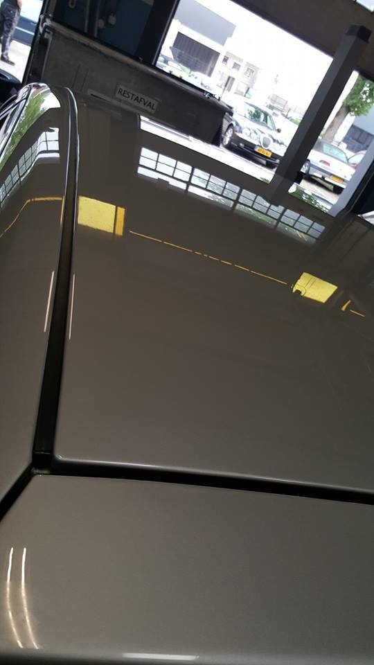 Ik zag geen andere mogelijkheid dan schuren. Zo gezegd zo gedaan. Deze keer op advies van de spuiter die de caddy gespoten heeft het droog te schuren ipv nat. Dit puur om tussen door te zien hoe ver je bent. Een klein blokje met korrel 1500 voor schuren en daarna met korrel 3000. Dit betekend wel flink door polijsten anders komen de krassen echt terug.