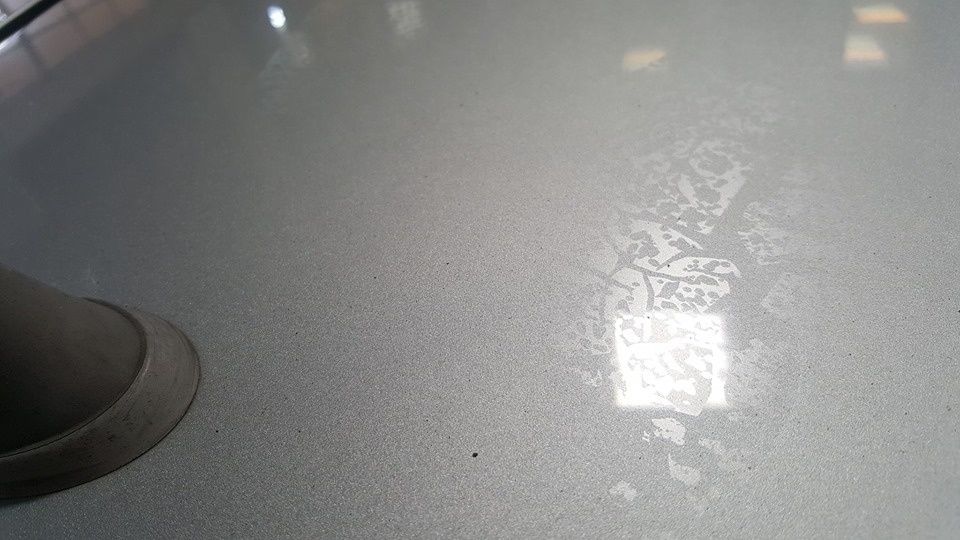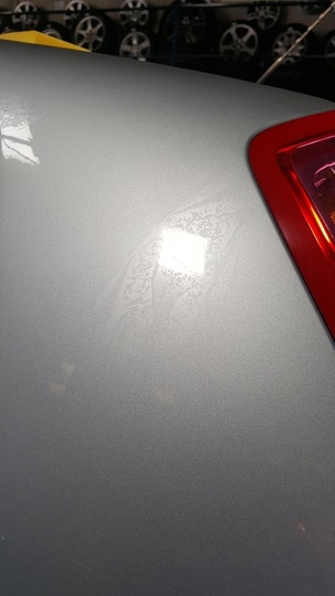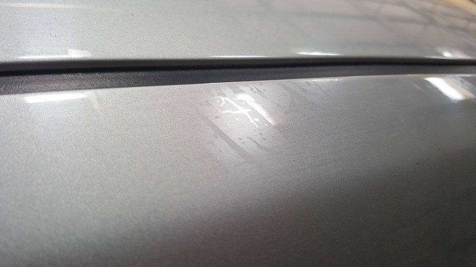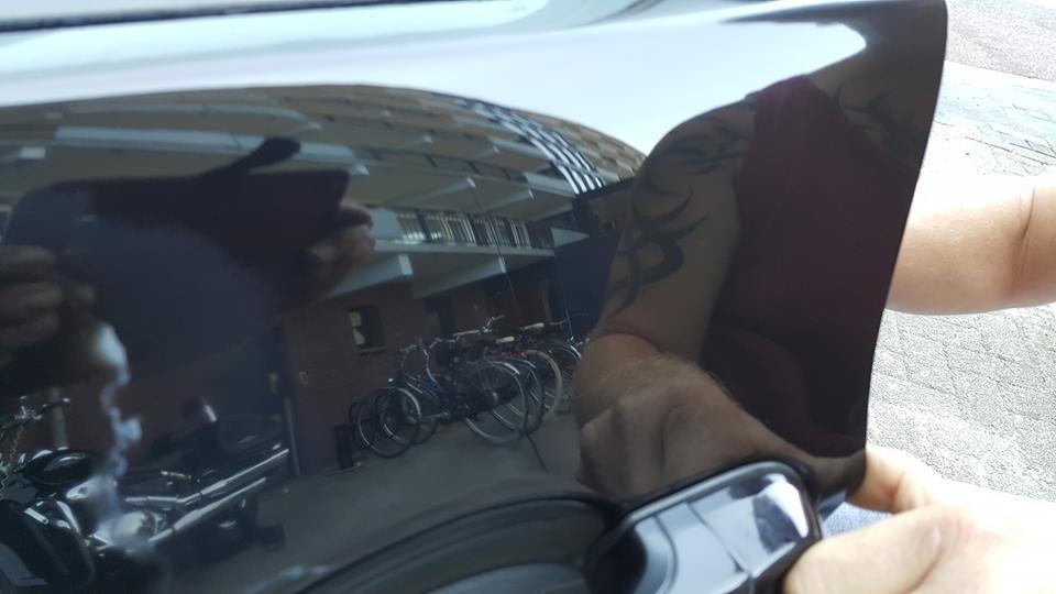 Weekmakers in de lak Na het spuiten van de auto is er folie over de auto heen gelegd. | ||