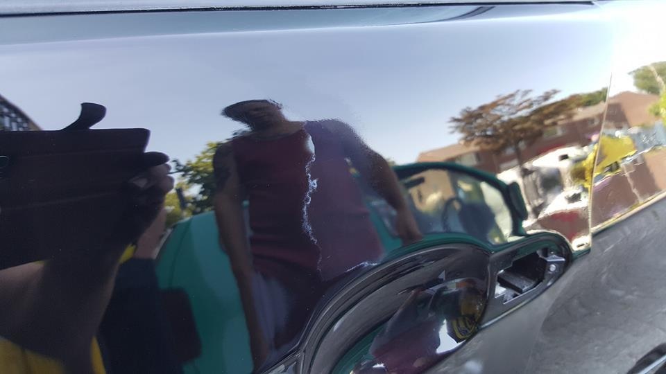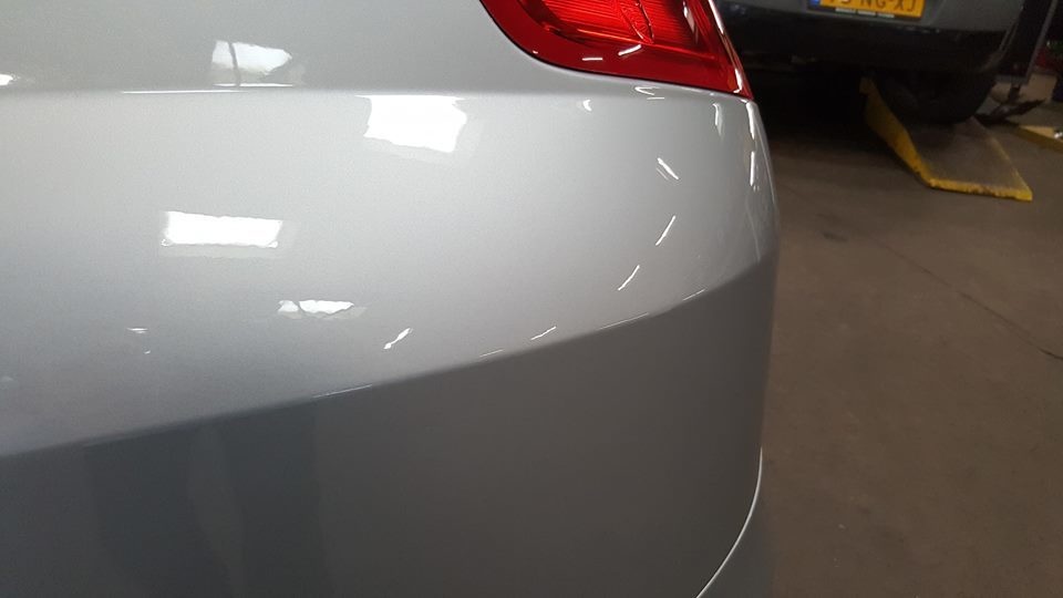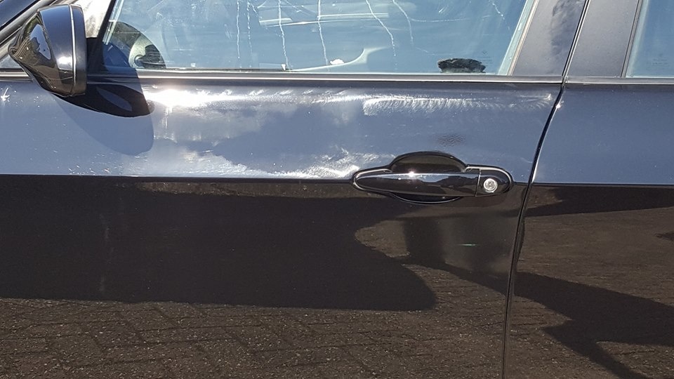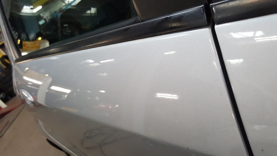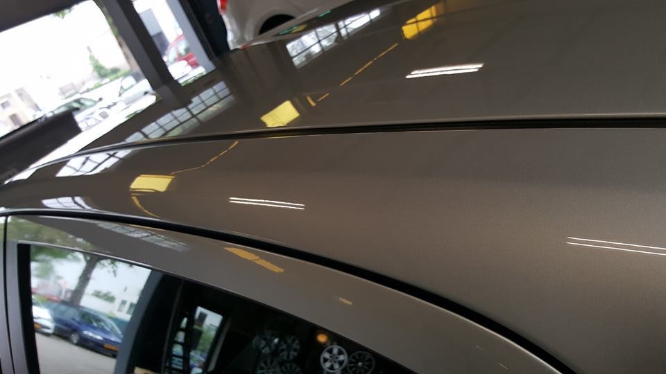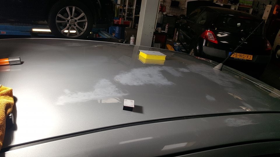 Vandaag ben ik wel aan een flinke uitdaging begonnen. Deze Fiat Punto is een jaar geleden overgespoten. En kwam zo terug van de spuiter. Op het dak op de deuren op de stijlen. Op diverse plekken was de folie vast gaan zitten aan de blanke lak. Die was nog niet geheel droog. Dan trekken de weekmakers die in de folie zitten in de lak. Ook de vorige eigenaar heeft een poging gewaagd om het eraf te krijgen. Dat leverde alleen maar meer schade op. Als je geluk heb dan is het op te lossen. Als je pech heb dan kan je naar de spuiter. Onder die voorwaarde ben ik eraan begonnen.