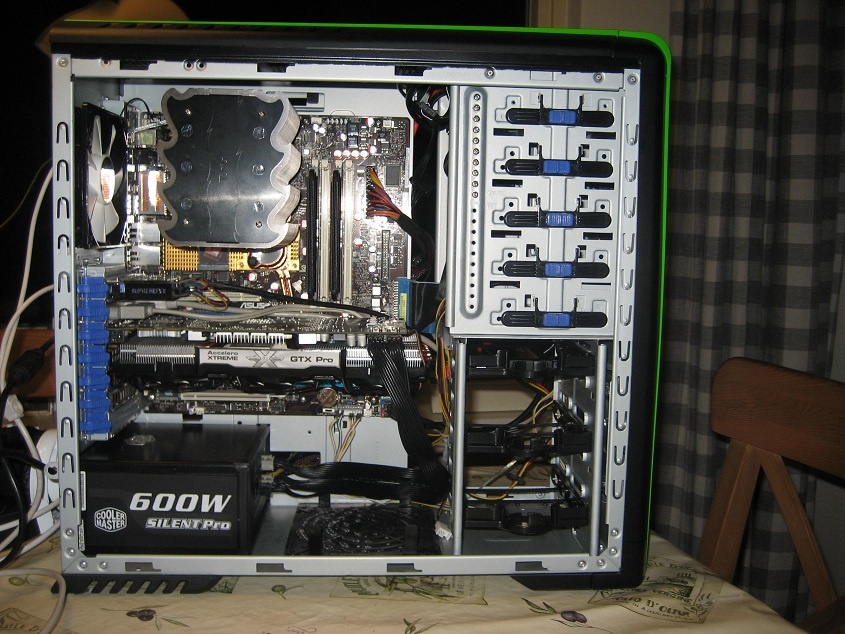 Mooie kast hoor. Volledig Arctic/Fractal styled. Jammer dat die HDD trays zo prominent aanwezig moeten zijn, een HD5970 plaatsen gaat nooit van je levensdagen lukken zonder de boel rigoreus onder handen te nemen...