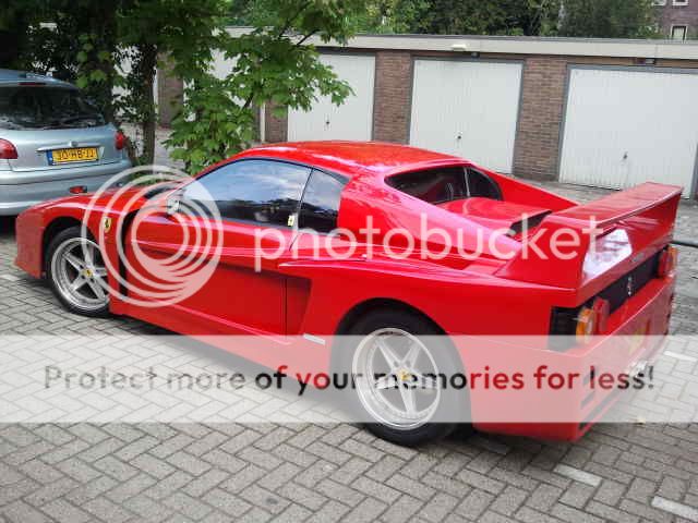 Afgelopen zondag reed ik in Breda, hoor ik ineens een hoop kabaal en zie ik in mijn ooghoek iets wat lijkt op een Ferrari F40. Waar bij 'lijkt' het goede woord bleek te zijn, want het was een replica, de verhoudingen klopten voor geen meter. Rechtsgestuurd, op NL kenteken, helaas geen foto kunnen maken. Na wat zoekwerk op internet zou het deze weleens geweest kunnen zijn, hij leek er in ieder geval wel op: