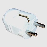 Ik ben dus op zoek naar een zwarte stroomverdeeldoos met een omgekeerde stekker. Wat meer uitleg is misschien op zijn plaats: een normale geaarde stekker heeft het gaatje van de aarding bovenaan, dan twee pinnen voor de stroomaansluitingen in het midden en de draad komt er onderaan uit.