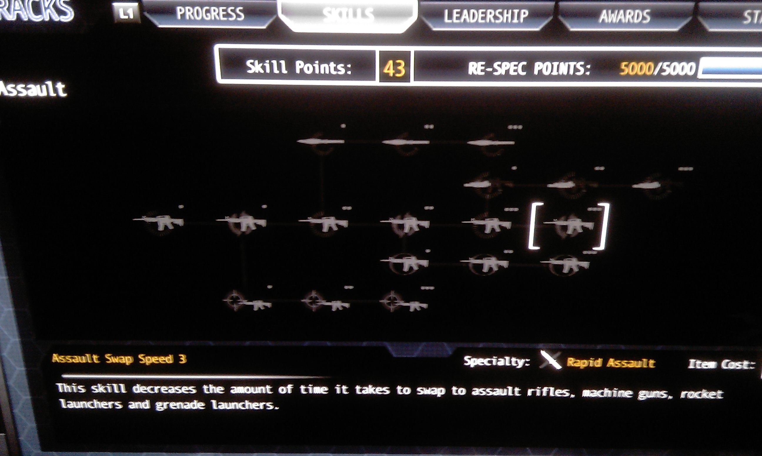 Ik ben zeker wel een uur bezig met het alleen al uittesten van de skilltree.. alles is opgedeeld, knife, medkit etc. Je kunt van alles niveau's kopen; sneller herladen 1, 2, en 3. De extended reach bestaat niet meer.