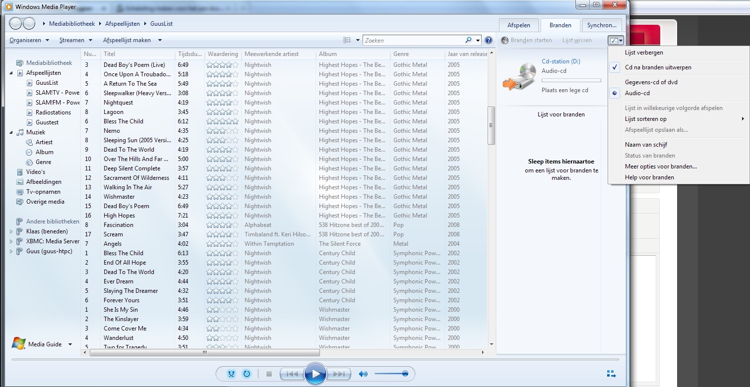 Ik probeer wat nummers op een CD te branden ( te lui om nero helemaal te installeren) en het kon vroeger met WMP.