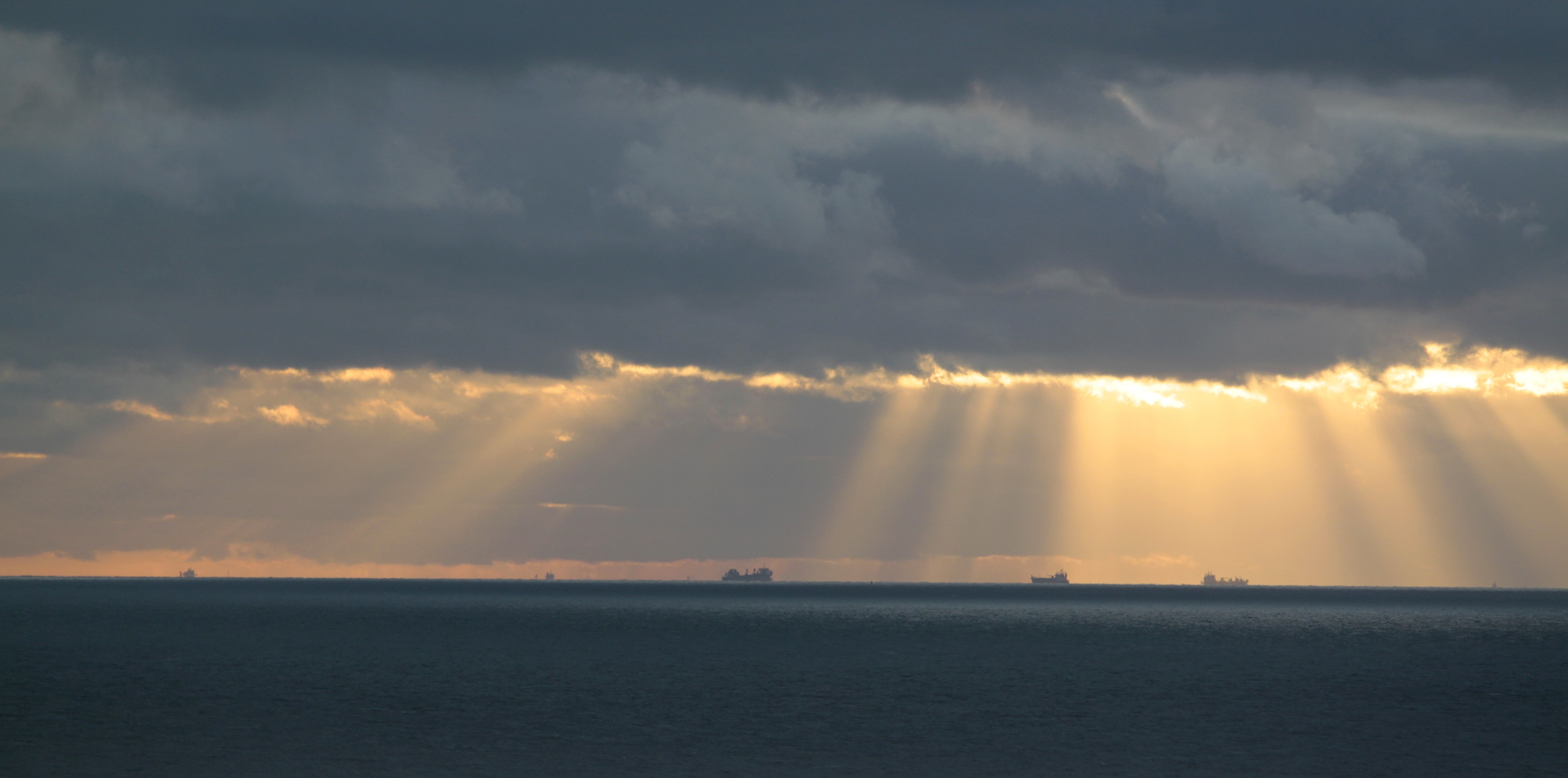Ja, de horizon staat recht. Nee, de huizen staan scheef ten opzichte van de auto.