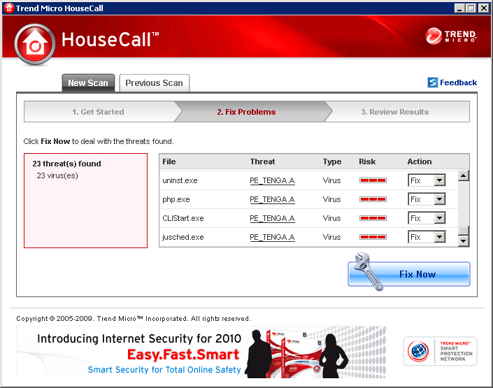 Had mijn server dan een virus/spyware etc. opgelopen? Omdat ik geen virusscanner op mijn server geinstalleerd heb, moest ik noodgedwongen een online-scan uitvoeren. Ik heb hiervoor http://housecall.trendmicro.com/ gebruikt en die gaf het volgende resultaat: