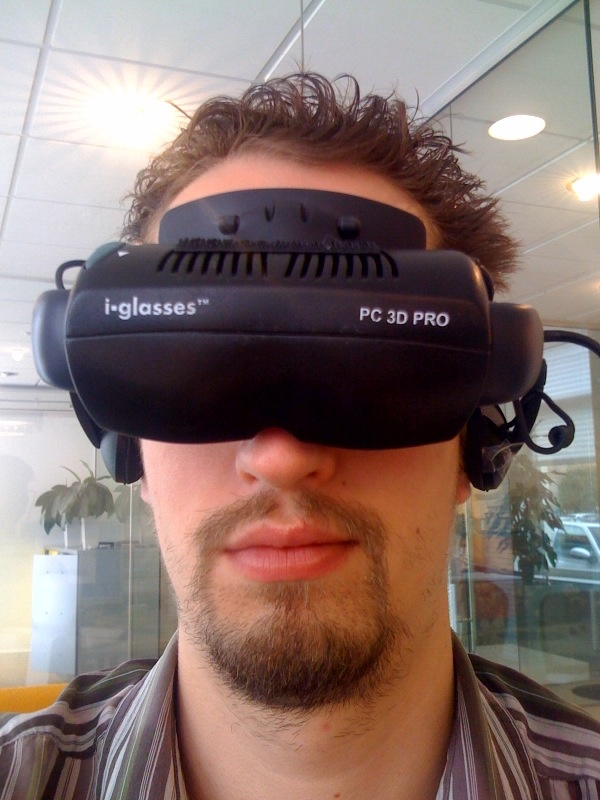 Dan het volgende; een HMD; de I-Glasses PC 3D Pro. Ik heb er toevallig eentje mogen proberen op m'n afstudeer bedrijf. Dit model maakt gebruiken van 2 LCD's die elk draaien op een resolutie van 800*600; dmv Shutter draait deze 'bril' 3D stereo beelden; dit gebeurd met een refresh rate van 100 Hz, zodat de ervaring relatief 'flikker vrij' overkomt. Voordeel is dus dat elk oog een eigen display heeft. Deze bril heeft tevens een 'hogere' resolutie dan de meeste HMD's die idd zoals eerder vermeld in dit topic 640*480 draaien. Hoe een resolutie lager per LCD er uitziet weet ik niet; wat ik wel weet is dat wat ik door deze bril zag, scherper oogt dan 800*600 op een 'normale' LCD; wat ook logisch is; aangezien de DPI heel erg hoog is (die LCD's zijn idd erg klein). Voordeel is dat de techniek beter werkt dan de Zalman monitor. Ik heb de bril aan de praat gekregen met IZ3D drivers, waar een trial voor 3D Stereo Shutter drivers bij zit. De bril werkte eerst met de Nvidia 3D stereo drivers; maar is met de komst van nVidia's eigen 3D Vision 'er uit gekicked'; net als alle andere legacy shutterglasses (van bij de luxere videokaarten van vroeger). Nadeel is dat het scherm oppervlak wel erg klein is; het lijkt op een 'groot' scherm wat aardig ver weg staat (vanaar dat men bij HMD's vaak zegt; like a 40 inch screen from 9 feet away... dat is optisch niet veel groter dan een veel kleiner scherm waar je vlak achter zit). Ook zit het ding niet echt comfortabel; je hebt ten eerste een dikke vga kabel er aan hangen + adapter en het brilletje zelf weegt ook aardig wat; wel is hij zo ontworpen dat je hem kan dragen voor je eigen bril (mocht je die dragen).