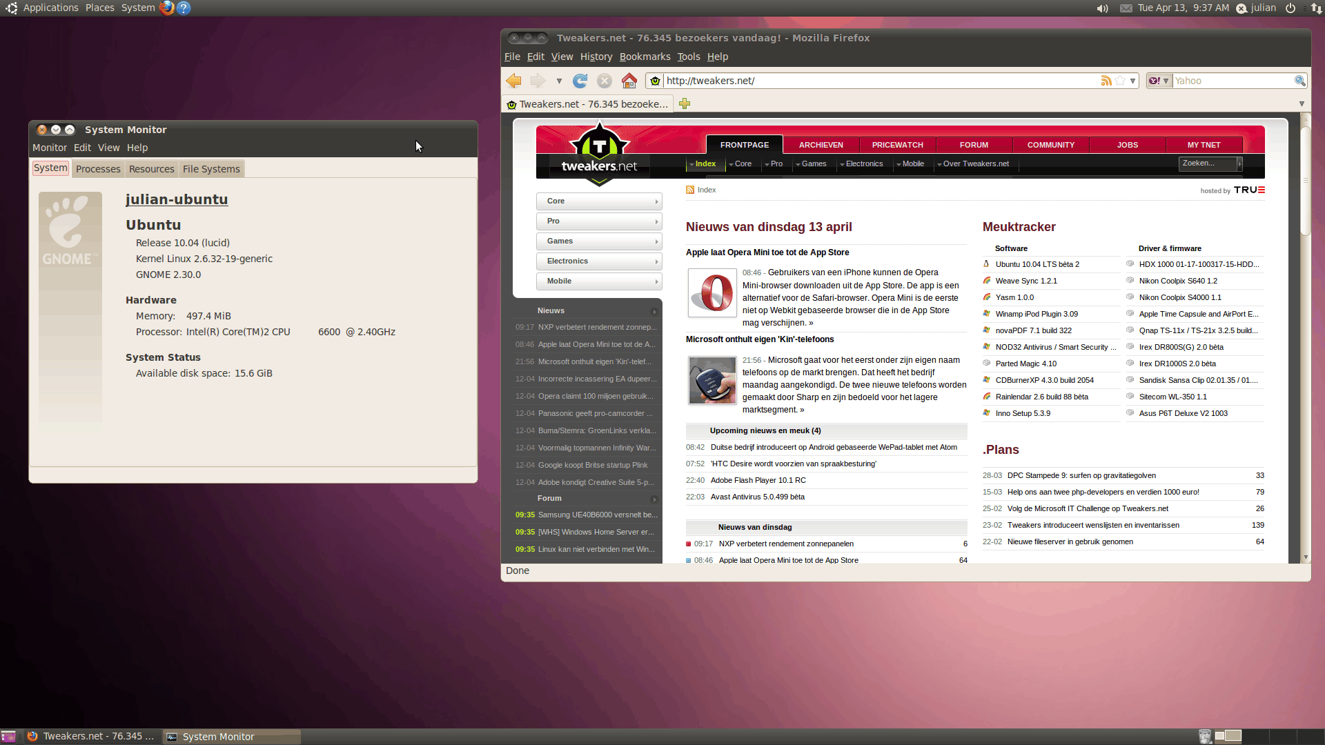Omdat er een hoop wijzigingen zijn in de interface van Ubuntu 10.04 LTS Bèta 2 t.o.v. de vorige stable (9.10), is het wellicht leuk om de nieuwe interface ook in een screenshot te tonen bij de meuktracker (even een screentje gemaakt):