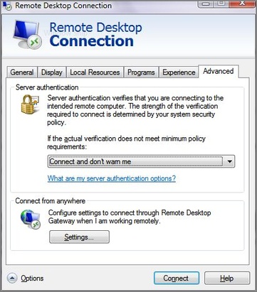 Ik probeer met RDP verbinding te maken met een windows 2008 Terminal Server.