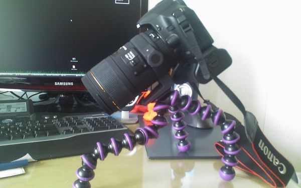 Een leuk dingetje. Er staat dat hij 3KG kan houden. Maar met mijn setup (500D, battery grip en een 150mm Sigma) heeft hij wel moeite, weegt bij elkaar rond de 1,5 a 2 KG denk ik. Dan moet je de poten goed neer zetten anders glijden ze weg. Maar geen probleem.
