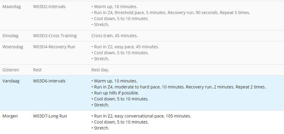 Dus waarom jij dat alles niet terugziet snap ik niet helemaal, ligt dit misschien aan het gebruikte horloge? Wat zie jij nu in de app als trainingen voor de komende dagen? Ik zou verwachten dat daar al wat diversiteit en complexiteit in te zien is.